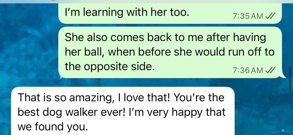 I understand that every dog is unique, with different needs, energy levels and personalities. Whether your pet enjoys a relaxed walk or an adventurous outing, I tailor each experience to ensure they feel comfortable, engaged, and happy.